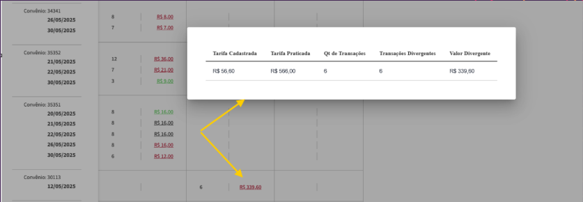 Visibilidade Completa: Tenha uma visão consolidada de todos os custos de tarifas de uma forma simples e prática, facilitando a gestão e o controle financeiro 💰. - Detecção Rápida de Discrepâncias: Identifique rapidamente qualquer discrepância entre as tarifas contratadas e as tarifas realmente praticadas, evitando surpresas no final do mês.